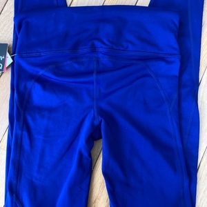These NWT GapFit sculpt compression fit leggings are soft and a beautiful royal blue color. These leggings are extremely well made from Gap . They are a compression fit which is tighter than normal leggings . They are high rise and fitted through the leg. They have the hidden pocket and blackout technology so you can see through them . These are an extra small . I can get them on and I usually wear a extra small to small but they were too tight for me so check out the measurements in the photos