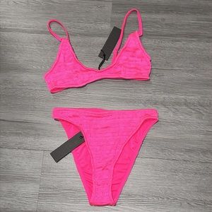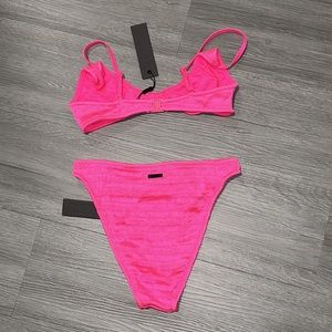 Hot pink thread swimsuit set with bonus bag.