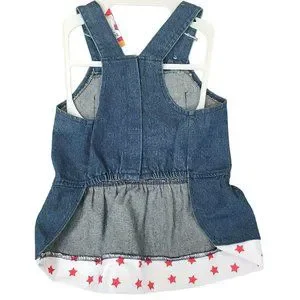 Top Paw Red White &Cute Pet Dog Dress Sz M Denim Flag Stars Stripes Independence