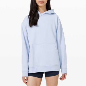 Lululemon All Yours Hoodie Daydream, light blue color! Excellent condition, very light wear to fabric as shown in close up, it is naturally a soft brushed material with fleece on the inside! Sold out style!!