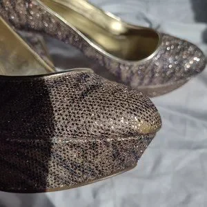 * Pretty Nine West Women's Mendoza Platform Pumps Gold Glitter Animal Print