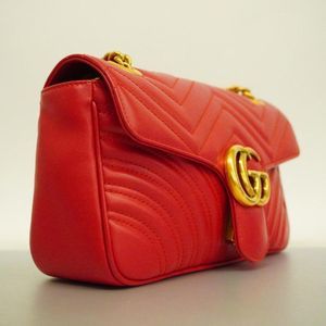 Gucci Gg Marmont Red Leather Shoulder Bag (Pre-Owned)
