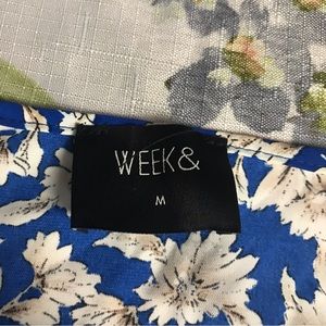 WEEK V-Neck Peplum Top Womens Size M Floral Blue short puffed sleeve pre owned