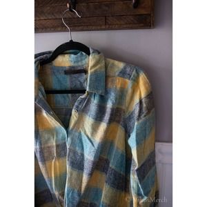 Perfect in plaid, this goes-with-anything top is featured in a staple button-front silhouette with classic collar detail and rounded bottom hem for added shape.