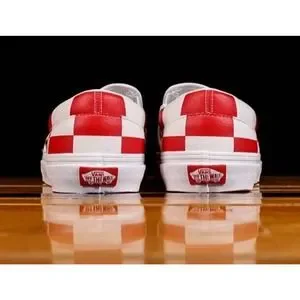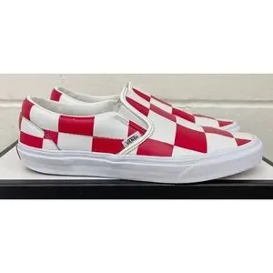 Vans Leather Red White Check Classic Slip-On Shoes Mens 13 New Fast Ship