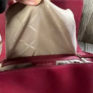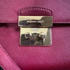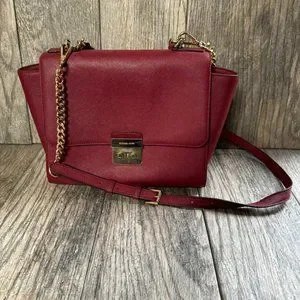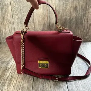 Michael Kors Brandi Womens Maroon Leather Gold Trim Top Handle Satchel Bag Purse