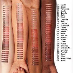Clinique Mink (28) Even Better Pop Lip Colour Foundation is a muted, medium-dark coppery-brown with fine, golden pearl woven throughout. It has a semi-opaque color coverage in a single layer, which adheres evenly and smoothly to the lips without dragging or tugging on them. It wears well for five hours and feels hydrating while worn.