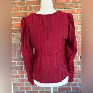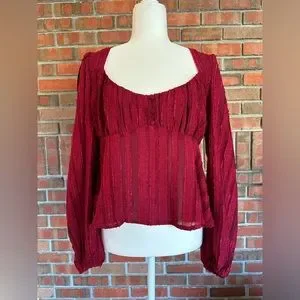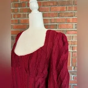 👗Lulu’s Spread the Cheer Wine Red Textured Square Neck Long Sleeve Top, size M