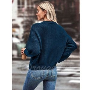 Red Heart Appliqué on Navy Blue Knit Pullover Sweater Long Sleeve Crew Neck