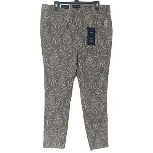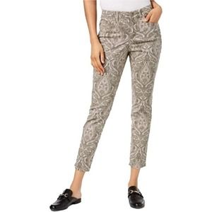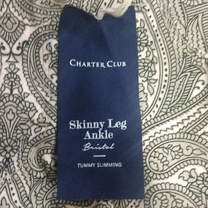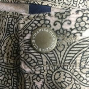 The Bristol skinny jeans by Charter Club are finished with quirky print for a cheery finish. Skinny fit through hips and thighs; skinny leg cropped at ankle. Zipper and button closure; belt loops. Classic five-pocket styling Allover print. Cotton/elastane