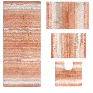 Coral Gradiation 4 Piece Set Bath Rug Collection, 17"x24", 21"x34", 21"x54", 20"x20"