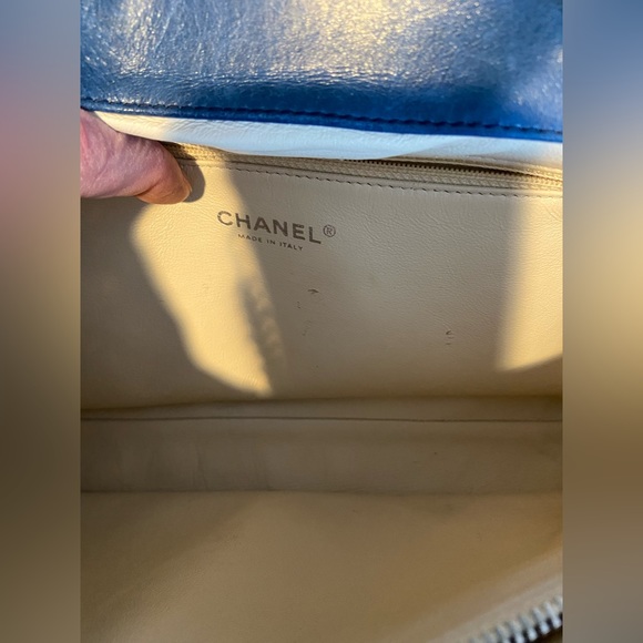 CHANEL Blue Quilted Distressed Convertible Boy Tote