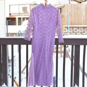 【SOLD】Purple Lace Qipao Midi A-Line Dress - Chinese Traditional Cheongsam