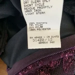 worn once for an event, now passing it on! was so comfortable all night long. has been professionally dry cleaned since purchased.