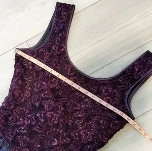 measures approx 16-18" armpit to armpit, 12.5-14.5" across waist, 17" across hips and 57" length.