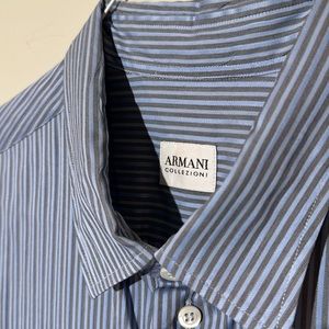 Giorgio Armani Collezioni Blue and Gray Striped Mens XL Dress Shirt.