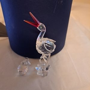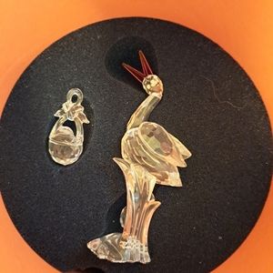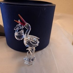 Like new Swarovski crystal stork with baby badket. So adorable! Comes with original cylinder. Stork is etched with Swarovski swan logo.