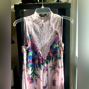 This is a Free People dress but may be used as a top, layering piece or nightie. Tried on but never worn out, nwt. Has a beautiful flow with colorful floral print. Size small.