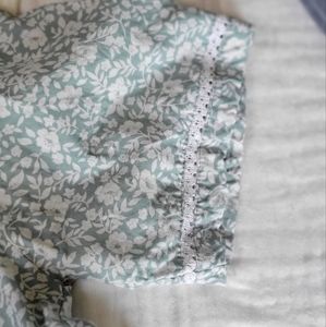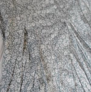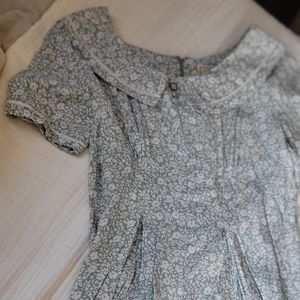 Beautiful 70's or 80's Floral Erika Dress with Peter Pan collar, Lace accents, and stunning pleats. The buttons are not functional but there is a zipper all down the back.