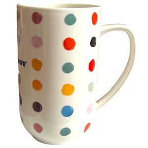 This set of 4 oversized ceramic Benjamin Moore mugs is in pristine condition with no chips, cracks or crazing. The Benjamin Moore logo appears on one side of each mug while the vibrant "paint" polka dots are on all sides of each mug. They're tall mugs with a large handle for easy holding. They're also microwave and dishwasher safe.