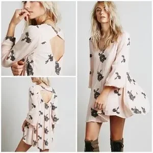 💫HP‼️💫 FREE PEOPLE “Emma” Embroidered Swing Dress in Blush Pink, Size Large