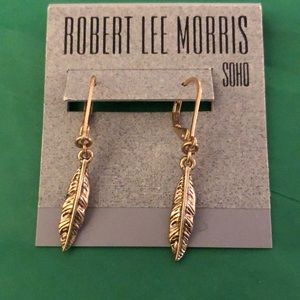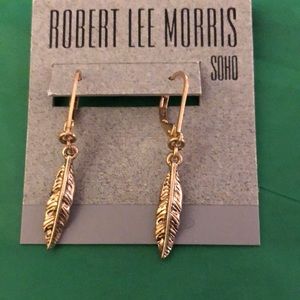 Robert Lee Morris Soho Gold Tone Textured Metal Feather Drop Earrings NWT
