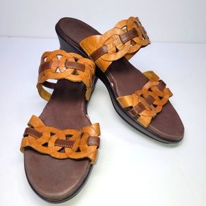 Munro American Walking Wedge Chunky Circle Strap Flat Slide In Sandle Shoe Sz 8