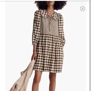 BNWT MADEWELL Gingham Collared Puff-Sleeve Mini Dress XXS
