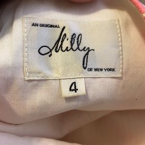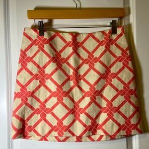 Milly pink and cream printed mini skirt. Side zipper and fully lined. A- line shape skirt. Medium weight. Please see all photos.