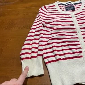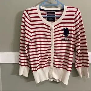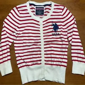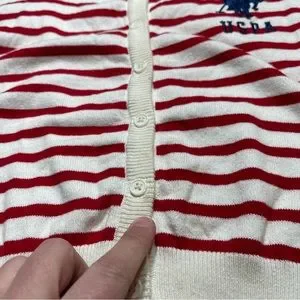 US Polo Assn- Vintage Red and White Striped Cardigan. Size Medium.