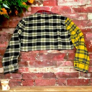 Women’s cropped multi coloured plaid button down, flannel like.
