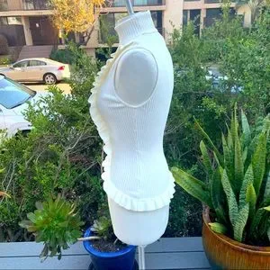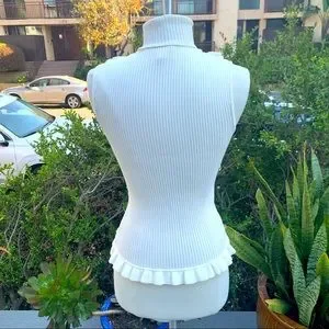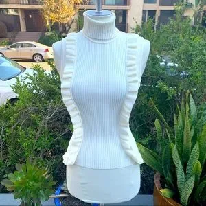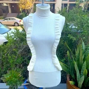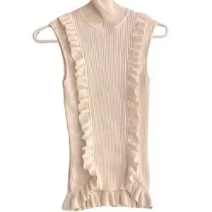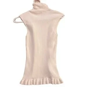 CINQ A SEPT Ruffle Front Sleeveless Mock Neck Sweater Ruffle Bottom Hem EUC