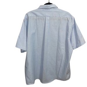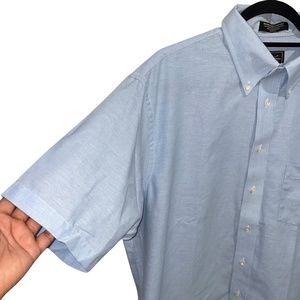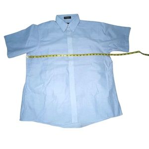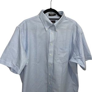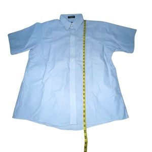 The Arrow Company Men's Button Down Wrinkle Free Oxford Cotton Blend 17 1/2 Short Sleeve, Light Blue, Feels unworn, 1 chest pocket, 60% Cotton, 40% polyester, Excellent pre owned condition,