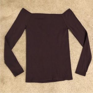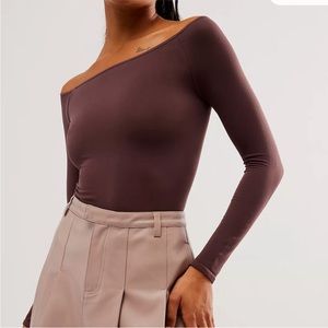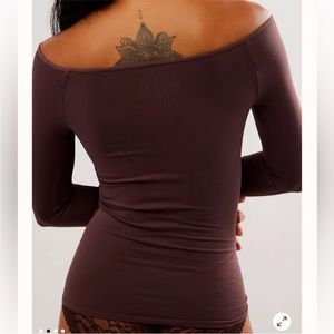 Free People Off The Shoulder Long Sleeve In Chocolate Merlot. NWOT! So sleek and seamless this stretchy long sleeve in a soft fabrication and slim fitting silhouette with a chic, off the shoulder neckline. Hip length. Stretchy feel. Seamless design. Fitted long sleeves. 92% nylon, 8% spandex. NWOT! Sz XS/S & M/L