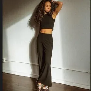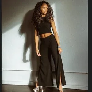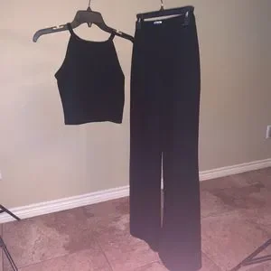 Black Halter Crop Top & Pants w/ side slits