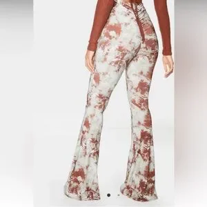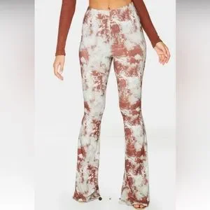 Stone Tie Dye Slinky Ruched Bum Flared Pants