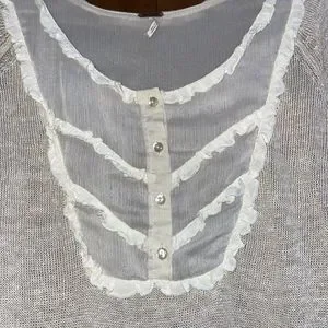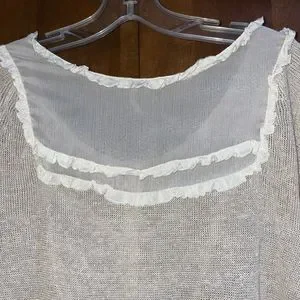 Cute linen free people oatmeal sweater with sheer/lace detail around the shoulders and chest. Gently worn!