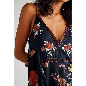 Perfectly printed in a forever femme floral print, this effortless maxi dress is featured in a drapey, V-neck silhouette with uneven bottom hemline and defined lace trim for added dimension.