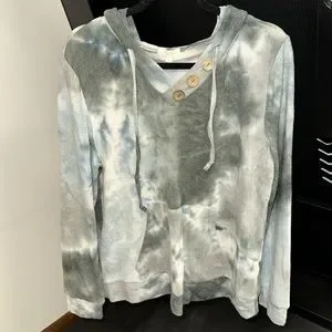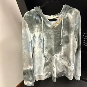 Size large brushed fabric with wood button details. Hoodie with draw string. Never worn, tag still on.