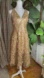 Beautiful plunging gold sequin dress with spaghetti strap fit and flare midi with sequin-lace fabric and concealed back zipper. Perfect for a special night out or any occasion.