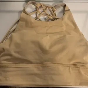 EUC Lululemon Free to Be High-Neck Longline Bra Wild Light Support Pecan Tan