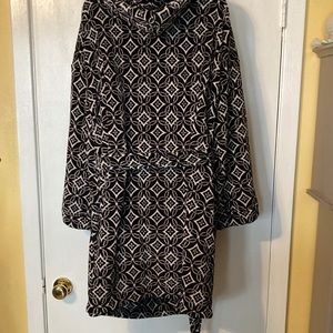 Vera Bradley Black and White Graphic Geometric Hooded Ultra Soft Fleece Robe