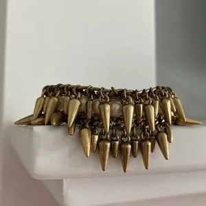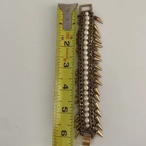 Bracelet is about 6-6.5” long and has a snap closure. Bracelet is no longer produced by Stella and Dot. Hard to find this bracelet in this condition with all spikes, pearls in tact and with the box.
