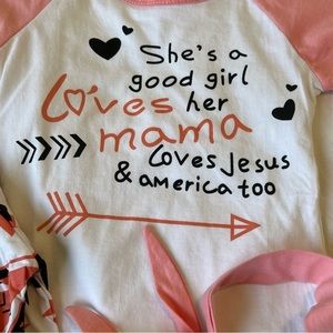No brand 3 piece set. Size 18-24 months. Ruffle pants with elastic waist. T-shirt and matching headband. New without tags. No flaws