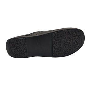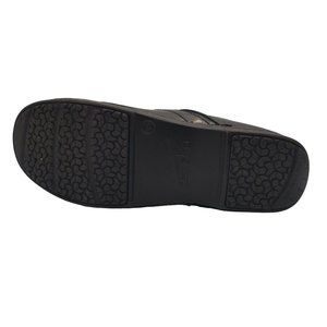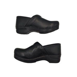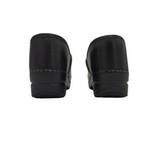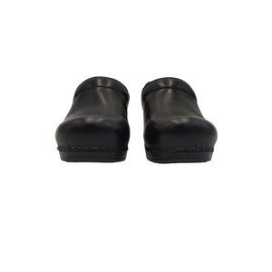 Step out in style with these black Dansko clogs. Made with comfortable leather upper and outsole materials, these pull-on shoes are perfect for casual occasions. They come and EU shoe size 39, making them a great fit for women of different sizes.