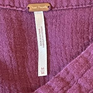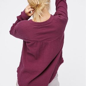 Free People Changing Horizons Gauze Crinkle Waffle Knit Pullover in Plum Purple