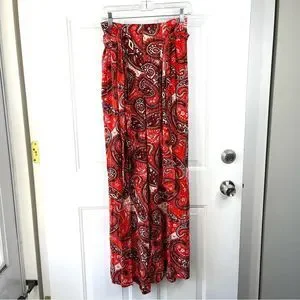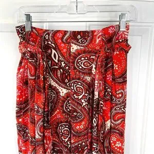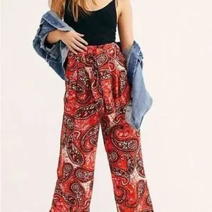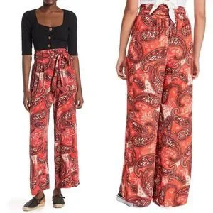 Free People Wide Leg High Waist Boho Tie Waist Paisley Pants Size Small