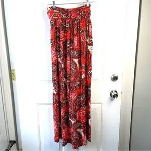 High waisted paisley pants, wide leg, a matching string to tie around your waist. Brightly colored and in great condition! They are stretchy too!