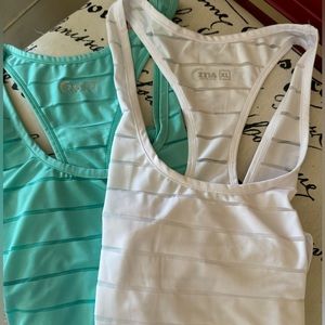 Lot of 2 Zyia Active Athletic Striped Tank Tops White and Mint Green XL EUC