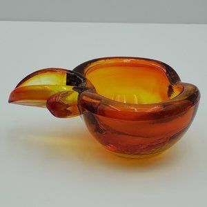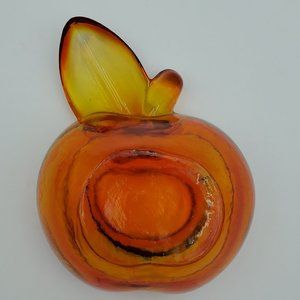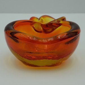 Orange Gold Glass Apple Dish Art Glass Trinket Candy Desk Dish Ring Holder